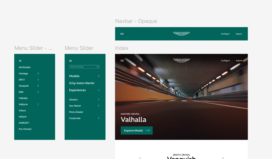 The goal here was to observe how small changes to the design system and layout could vastly improve the user experience. While Aston Martin is a strong, innovative brand, their current website suffers from outdated design elements and a layout that gives way to horror vacui.